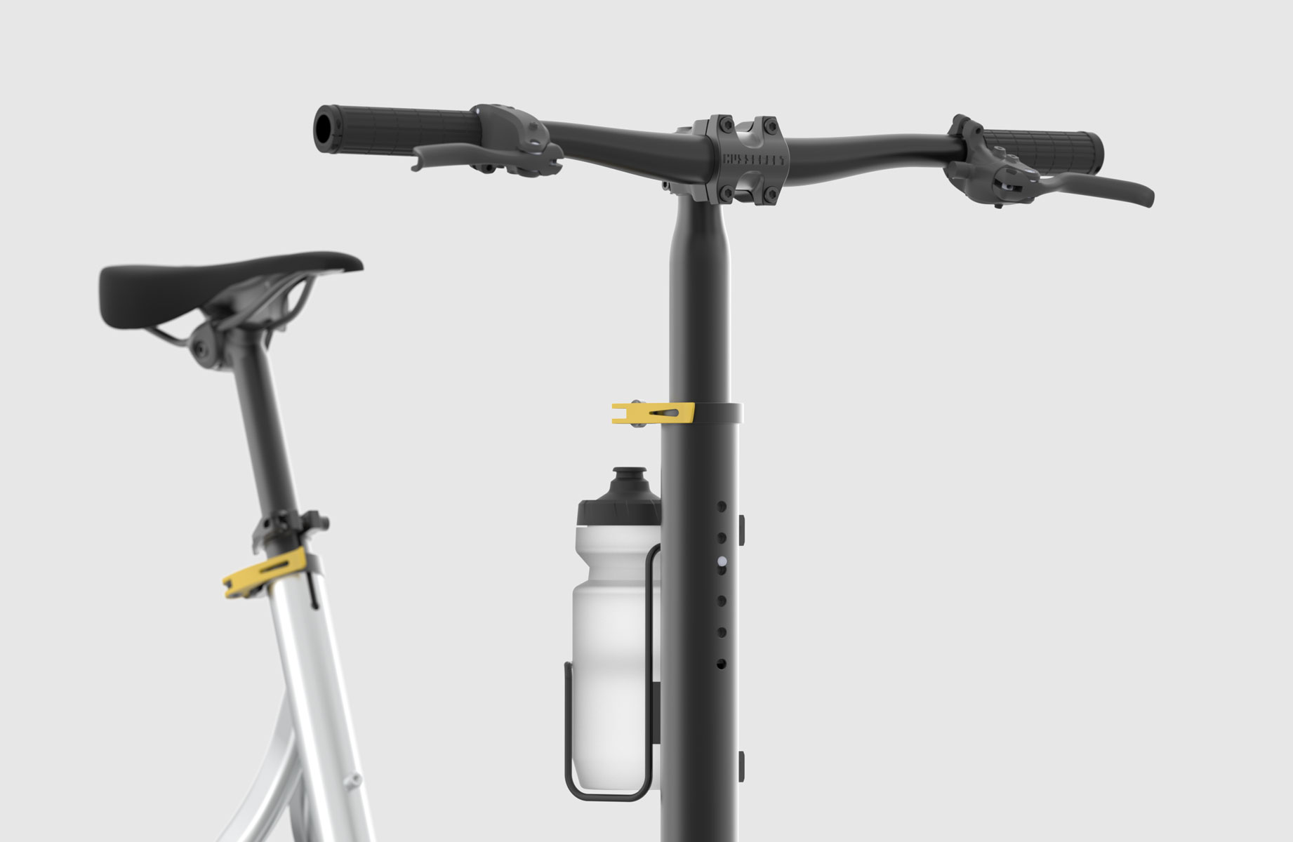 The foldable steering column adapts to any rider thanks to the locking pin system.